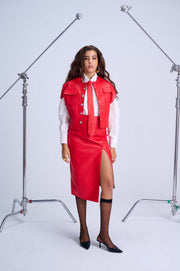 Cape Bomber Jacket — Bold Red Elegant Vegan Leather with Artistic Lined Interior - Red / Free Size