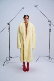 Dramatic Oversized Fur Coat — Vegan Fur with Wild Artistic Lining in Daring Yellow