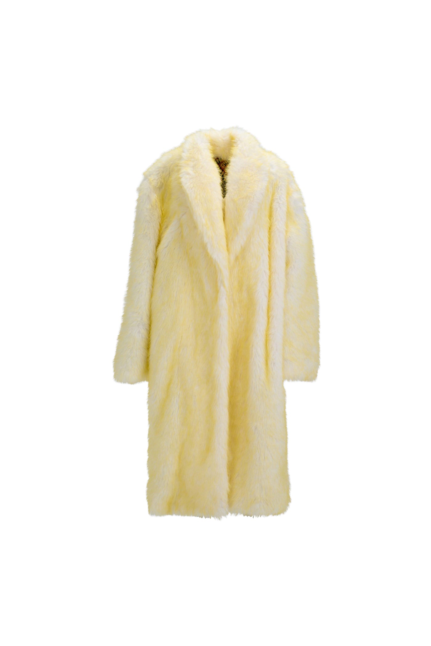 Dramatic Oversized Fur Coat — Vegan Fur with Wild Artistic Lining in Daring Yellow - Yellow / Free Size