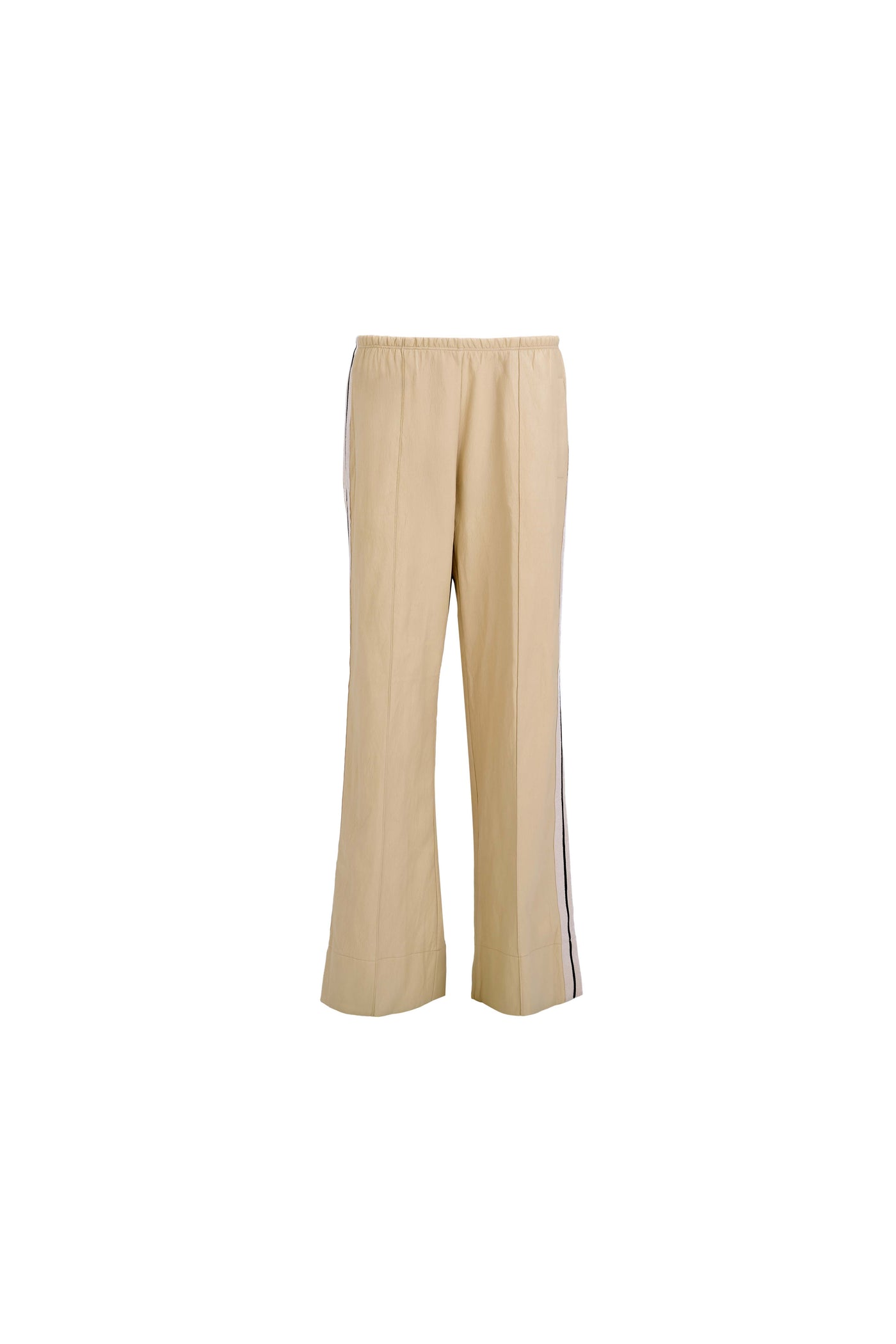 Perfect Suit Pants — Straight-Leg Vegan Leather with Side Stripes in Ivory Yellow