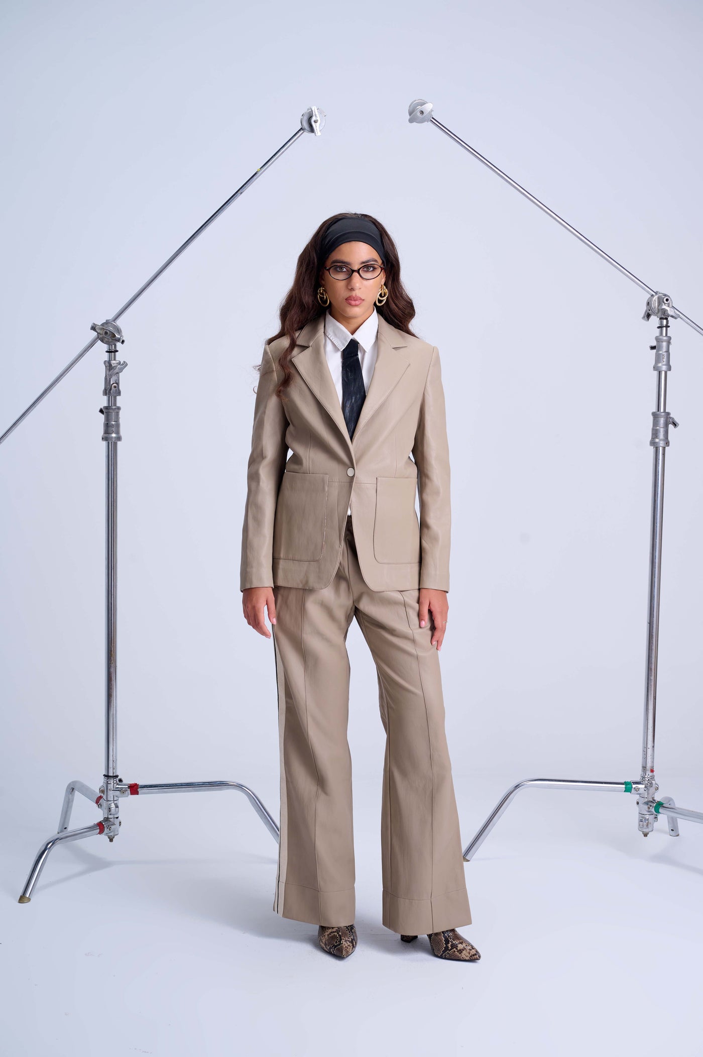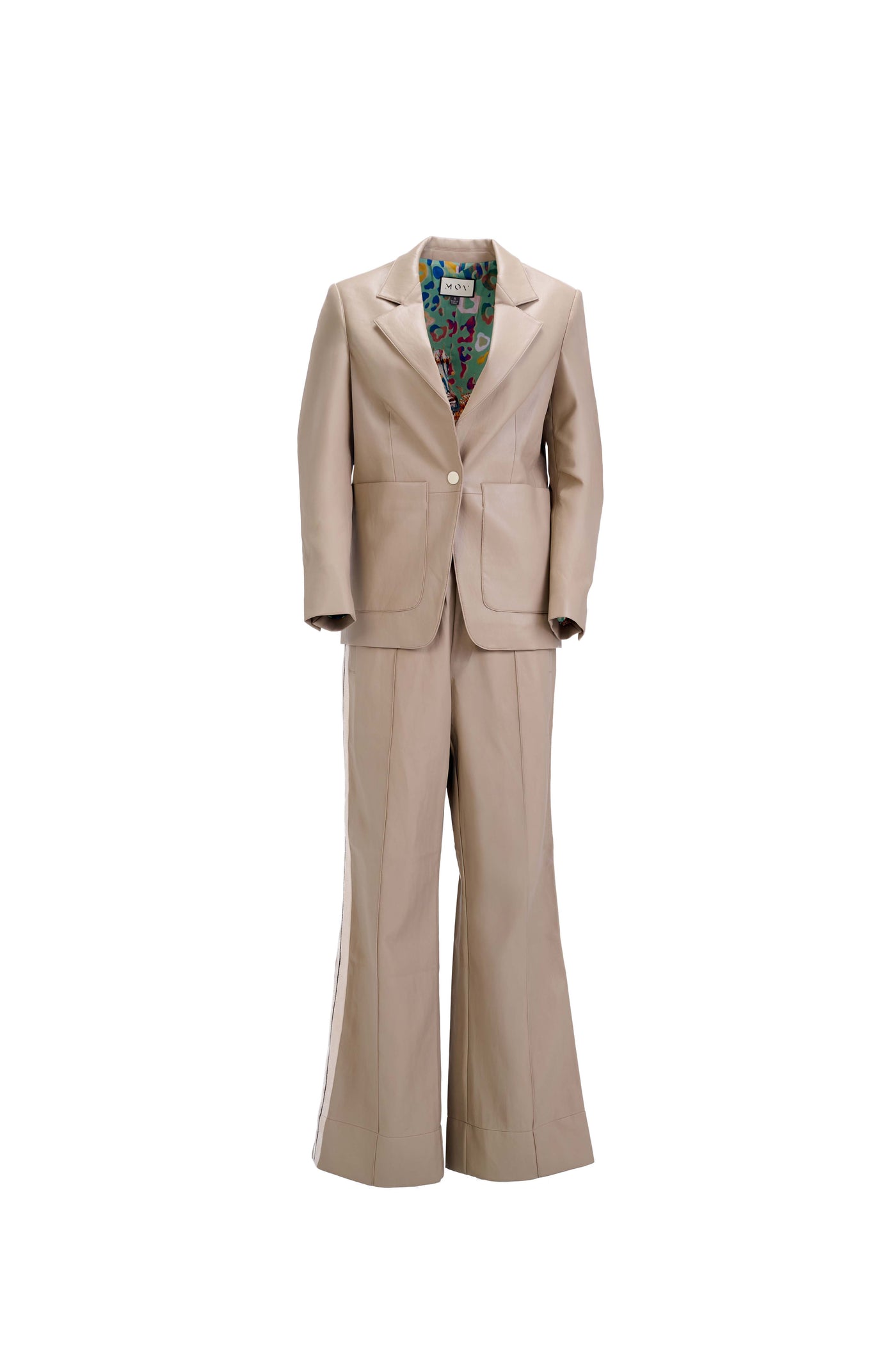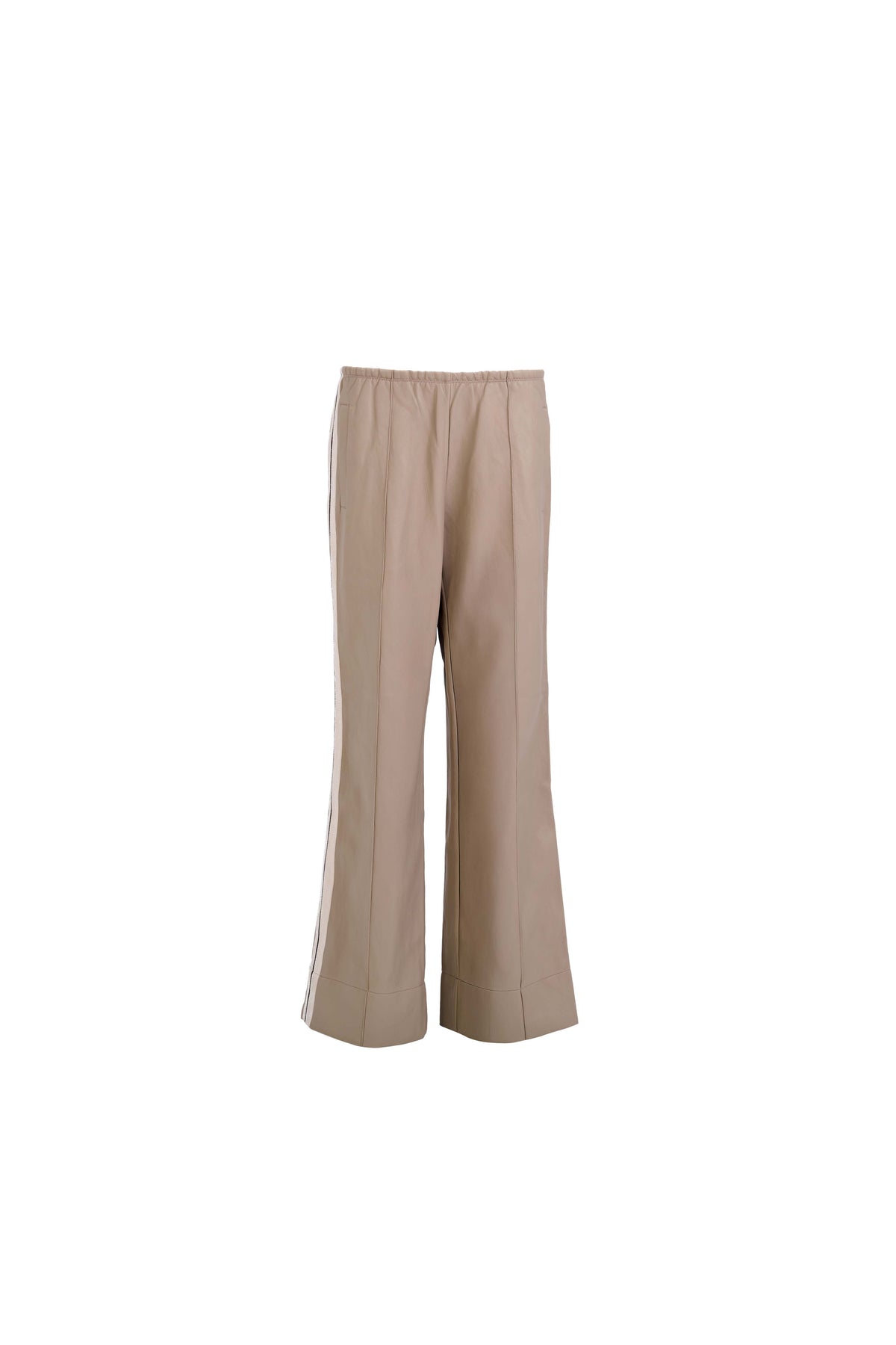 The Perfect Suit Pants bring effortless sophistication to everyday wear, blending the polish of tailoring with the comfort of athleisure. Crafted from supple vegan leather with sleek side stripes, they feature a straight-leg silhouette, functional side pockets, and an elastic waistband for a modern, flexible fit. The wrinkle-resistant, wipe-clean finish makes them ideal for travel and day-to-night transitions. Ethically produced in small batches, these pants reflect conscious craftsmanship and timeless design.