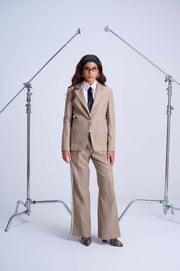 Perfect Suit Pants — Straight-Leg Vegan Leather with Side Stripes in Mocha