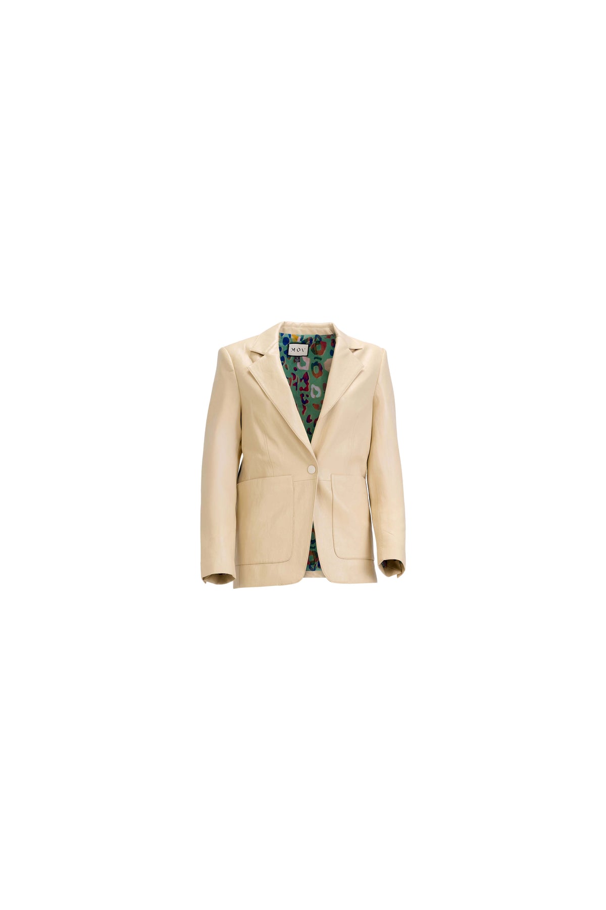 The Perfect Suit Blazer — Tailored Vegan Leather in Ivory Yellow