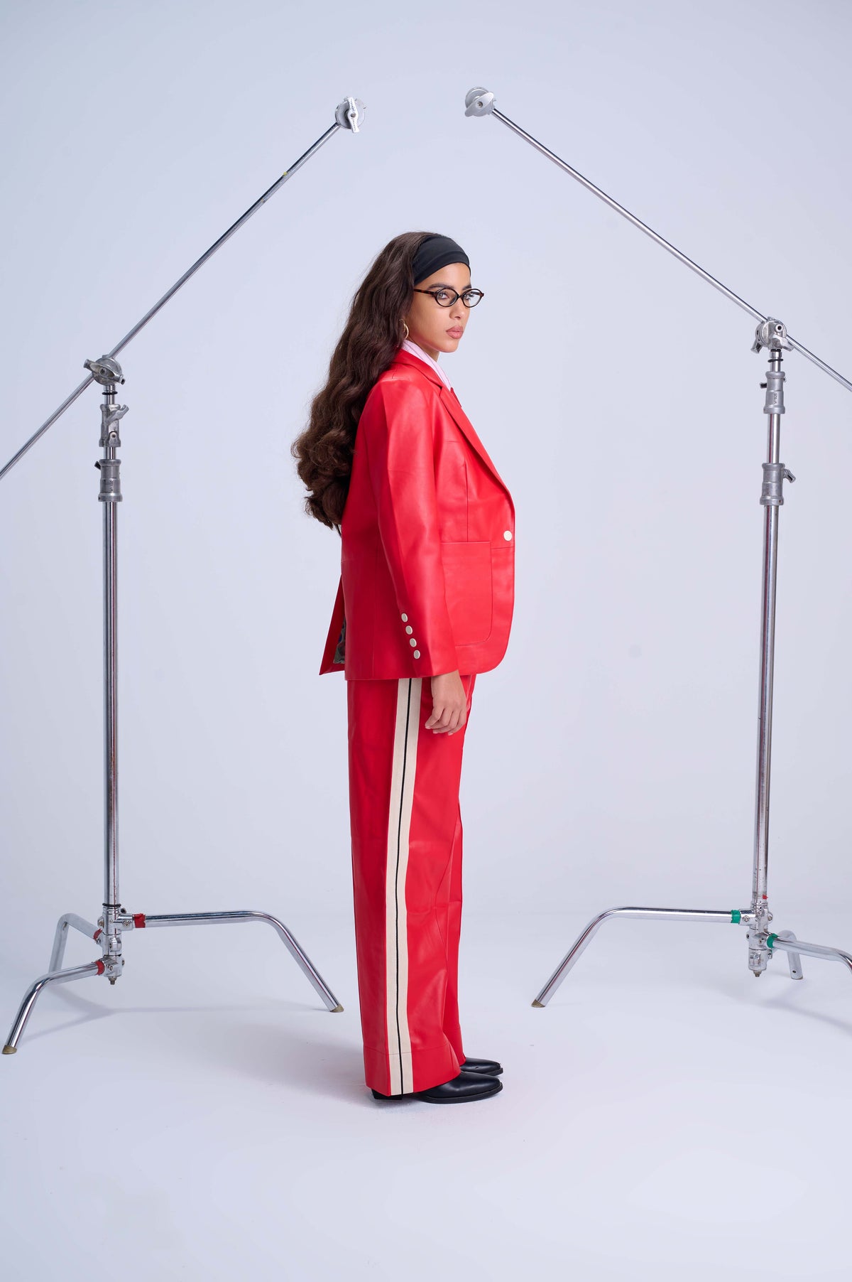 The Perfect Suit Blazer — Tailored Vegan Leather in Bold Red