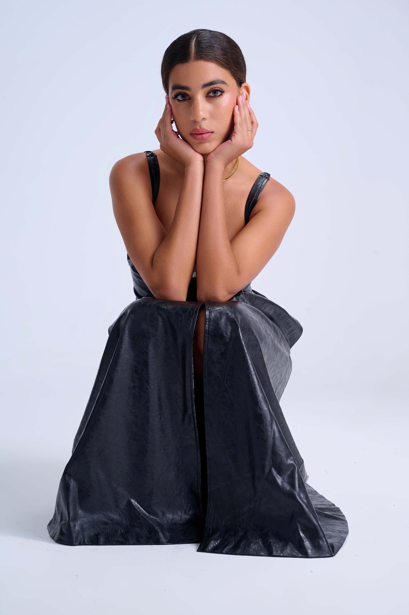 The Midi Slit Dress captures the perfect balance of structure and flow. Crafted from smooth black vegan leather, it features a structured bustier bodice that defines the waist and a flared midi skirt with a front slit that adds movement and allure. Lined in soft satin for comfort, every seam and panel is designed with precision to contour and flatter. This versatile piece transitions effortlessly from day to evening, embodying MOV’s philosophy of refined craftsmanship, versatility, and conscious luxury.