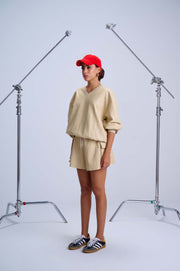 V-Neck Sweatshirt — Ivory Unlined Vegan Leather with Relaxed Silhouette - Ivory / Free Size