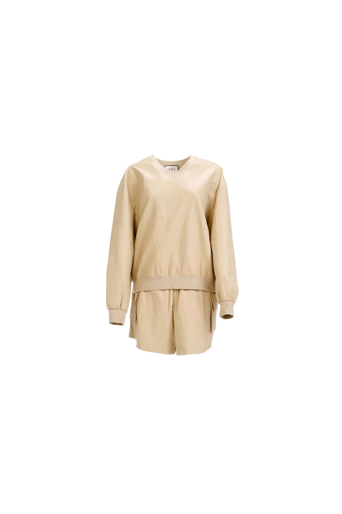 V-Neck Sweatshirt — Ivory Unlined Vegan Leather with Relaxed Silhouette