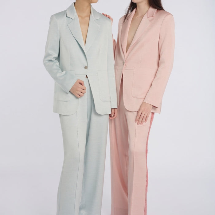 Make a sophisticated statement with our Elegant Light Pink Suit Set. This chic ensemble includes a tailored blazer and wide-legged trousers, perfect for both professional and social settings. The blazer features a classic notch lapel and a single-button closure, offering a sleek and polished look. The wide-legged trousers provide a modern twist, ensuring comfort and style throughout the day. Crafted from high-quality materials, this suit set is designed to keep you looking sharp and feeling confident.